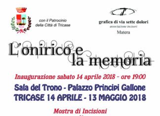 Si inaugurerà sabato 14 aprile 2018, alle ore 19.00, nella Sala del Trono del Palazzo Principi Gallone di Tricase, in provincia di Lecce, la mostra di incisioni "L'onirico e la memoria" di Vittorio Manno...
